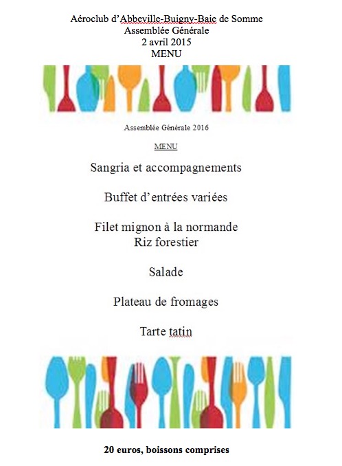 L’Assemblée Générale annuelle de l’Aéro-Club aura lieu le Samedi 2 avril 2016.