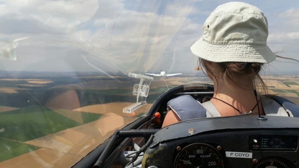 Aujourd’hui, Julia renouvelle son exploit ! 1h35 de vol solo en local , spiralant, tout en chantant à tue-tête, c’est elle qui me l’a dit, promis, de Troyes à Mongueux et inversement ! Vive le vol en planeur !
