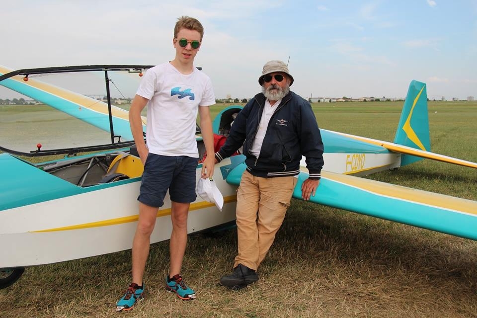 Le sacre de la journée est remporté par Antoine Lentz ! Son père Christophe et lui ont accumulé les heures de vol et Antoine est sorti gagnant de la compétition. Après un lâché Solo ASK13 et Piwi, au stage de l’année dernière, il a renouvelé ses exploits cette année, en réussissant son Brevet théorique le matin et en validant son Brevet pratique de pilote de planeur l’après midi, sous le regard attentif et rigoureux de son instructeur, Frédéric Peignot. Non comptant de tout cela, il en profite pour fêter, au cours de ce même mois de juillet, la réussite du Bac, puis le permis de conduire et ses 18 ans le même jour ! Le top du top !