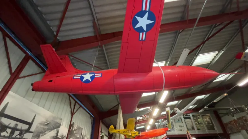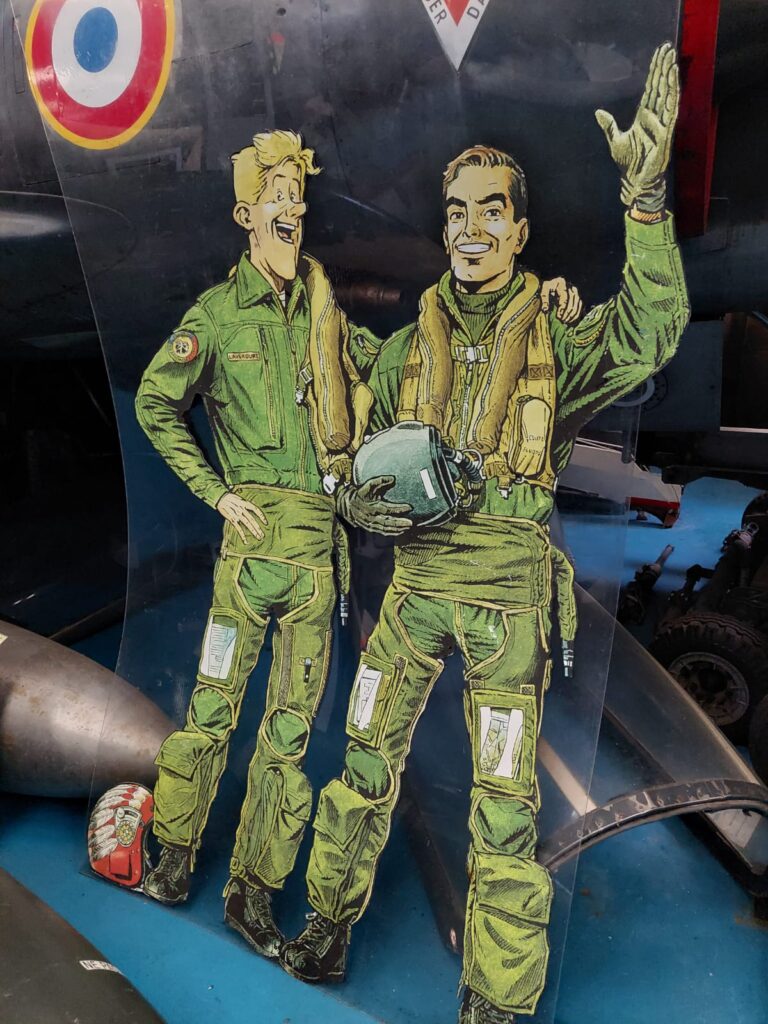 Entre deux, vous trouverez un Mirage 4 (2340 km/h, 25 m de long) qui portait l’arme atomique ou alors l’un des deux planeurs oranges dans lesquels Bourvil et De Funès se sont envolés à la fin de La Grande Vadrouille. Les vrais du film !