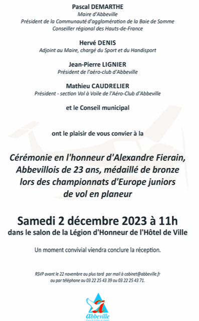 Vice-Champion du Monde de Vol en Planeur à 24 ans, Médaille d’Argent en Tchéquie, d’Abbeville à Tabor, Alexandre Fiérain est une Star !!!!