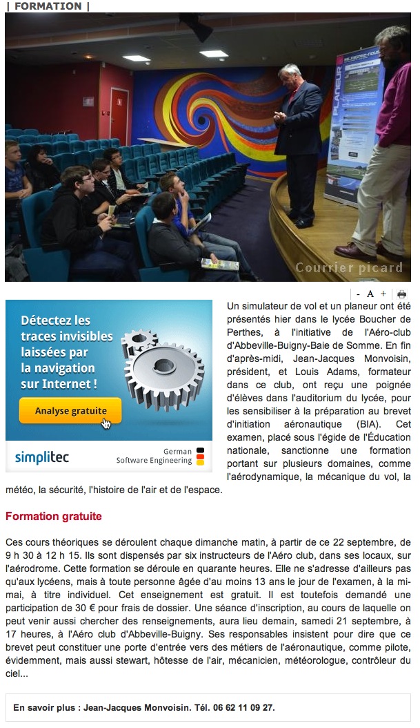 Même si à 91 ans, il ne vole plus, René Georges continue de fréquenter l’aéro-club d’Abbeville, dont il est un doyen discret aux 2 000 heures de vol. Respect.